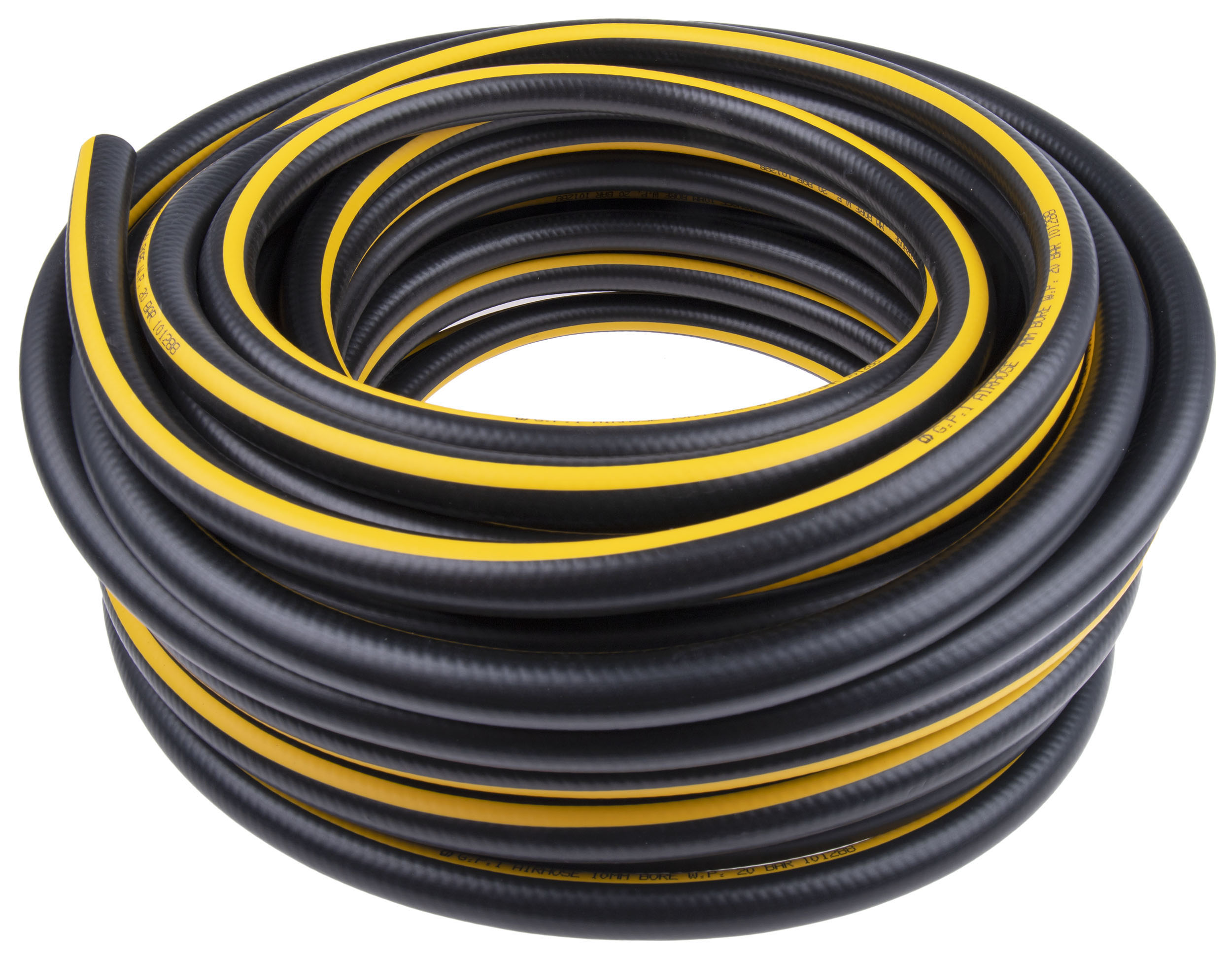 This is Black/Yellow 30m PVC Nitrile Blend Air Hose Application Various manufactured by RS Pro. The manufacturer part number is 197-8538. It has a maximum operating temperature of +60°c. The product is made from highly stable and reliable tpe. Its accurate length is 30mm. Whereas, the minimum operating temperature of the product is -15°c.