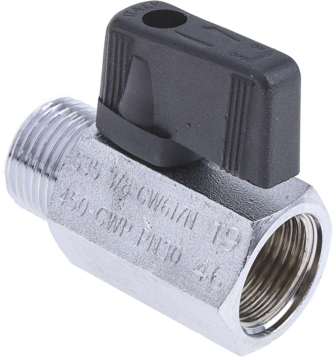 This is Chrome Plated Brass Line Mounting Hydraulic Ball Valve G 3/8 manufactured by RS Pro. The manufacturer part number is 486-366. It has a typical thread size of 3/8in. This product features 2-way number of ports. The product's body is nicely designed from chrome plated brass materials. Whereas, the minimum operating temperature of the product is -20°c. It has a maximum operating temperature of +90°c.