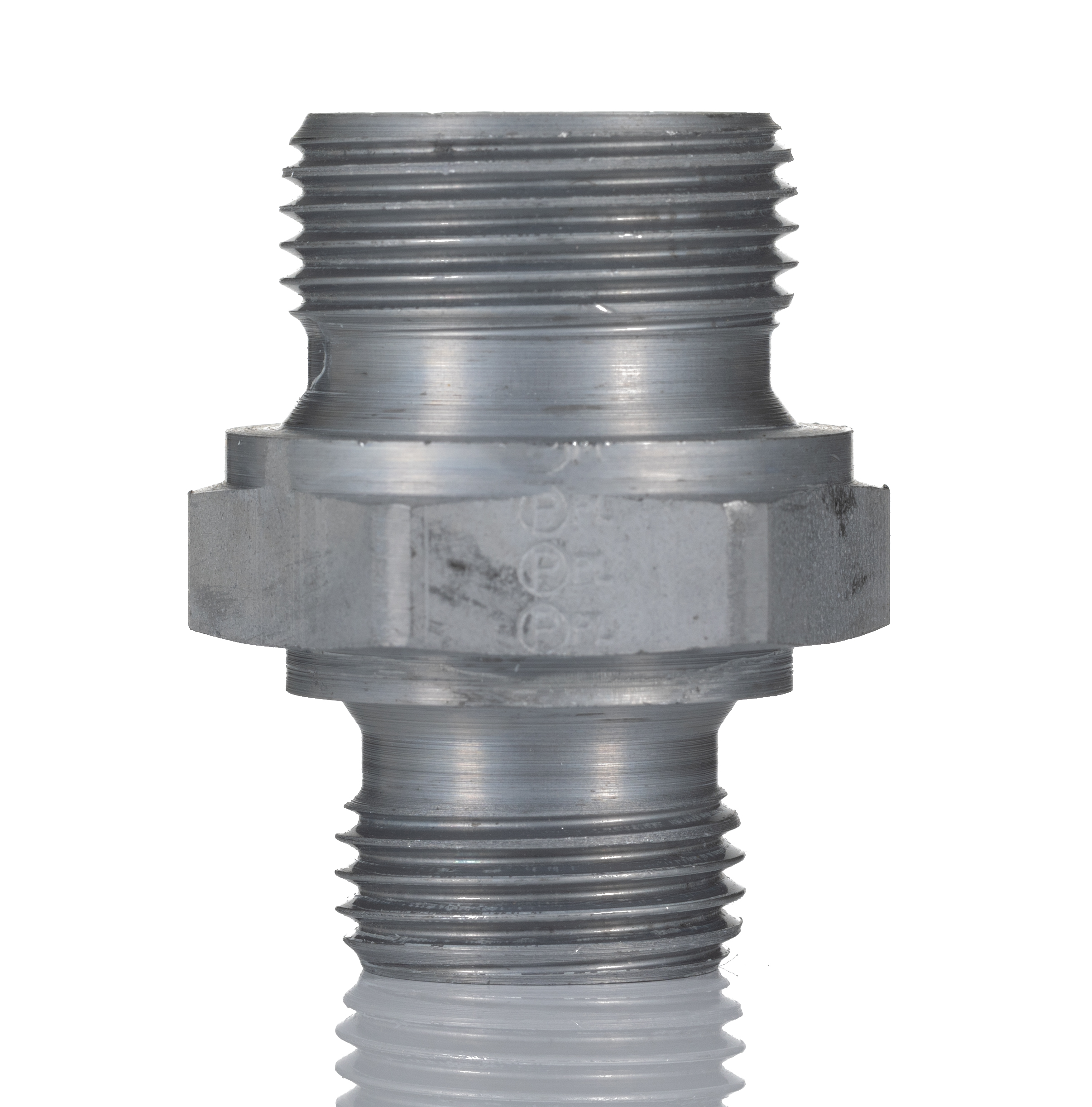 This is Hydraulic Straight Threaded Adapter Connector A G 1/2 Male Connector B G 3/4 Male manufactured by Parker. The manufacturer part number is 12-8HMK4S. A quality product with a nice zinc plated finish. The product is made from highly stable and reliable steel. It has a maximum operating temperature of +120°c. Whereas, the minimum operating temperature of the product is -40°c.