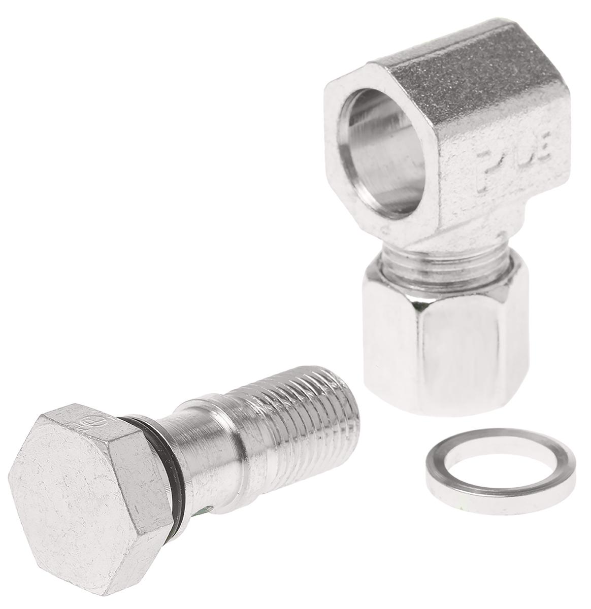This is Pneumatic Banjo Threaded-to-Tube Adapter Push In 8 mm Tube 315 bar manufactured by Parker. The manufacturer part number is WH08SRCF. A quality product with a nice zinc plated finish. The product is made from highly stable and reliable steel. It has a maximum operating temperature of +120°c. Whereas, the minimum operating temperature of the product is -40°c.