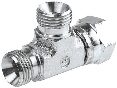 This is Hydraulic Tee Threaded Adapter Connector A G 3/8 Female Connector B G 3/8 Female manufactured by Parker. The manufacturer part number is 6R6MK4S. A quality product with a nice zinc plated finish. The product is made from highly stable and reliable steel. It has a maximum operating temperature of +120°c. Whereas, the minimum operating temperature of the product is -40°c.
