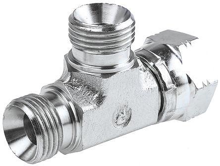 This is Hydraulic Tee Threaded Adapter Connector A G 1/4 Female Connector B G 1/4 Female manufactured by Parker. The manufacturer part number is 4R6MK4S. A quality product with a nice zinc plated finish. The product is made from highly stable and reliable steel. It has a maximum operating temperature of +120°c. Whereas, the minimum operating temperature of the product is -40°c.