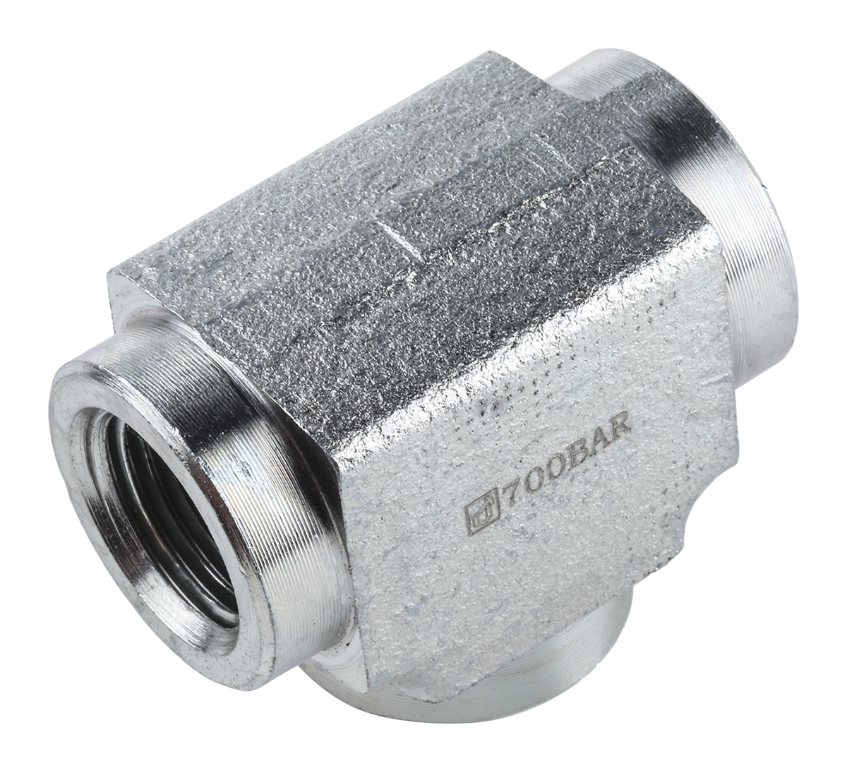 This is Hydraulic Tee Threaded Adapter Connector A NPTF 3/8 Female Connector B NPTF 3/8 Female manufactured by Enerpac. The manufacturer part number is FZ1612.