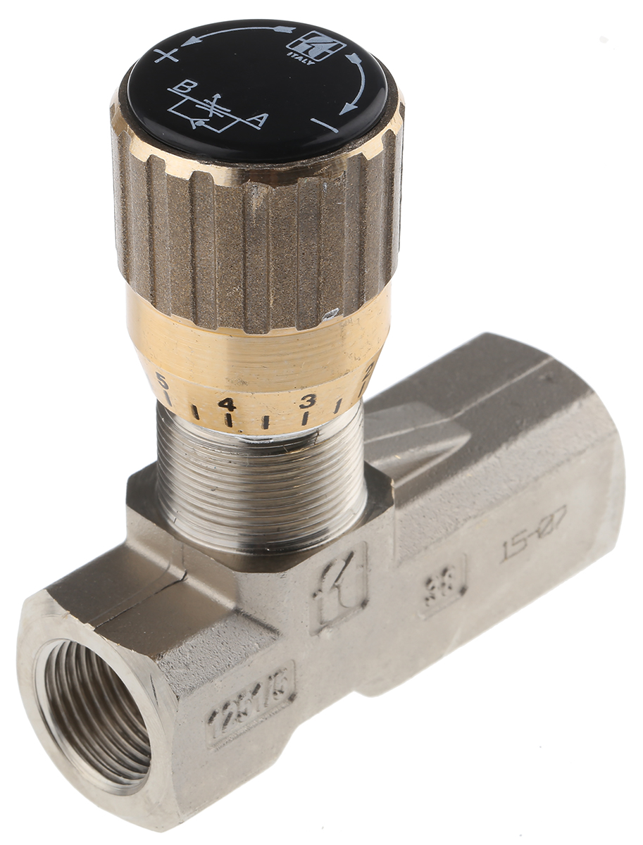 This is Line Mounting Hydraulic Flow Control Valve G 3/8 210 bar manufactured by RS Pro. The manufacturer part number is 283-4029. The product is available in inline configuration. It has a typical thread size of 3/8in. The product's body is nicely designed from nickel plated brass materials. Whereas, the minimum operating temperature of the product is -20°c. It has a maximum operating temperature of +100°c.