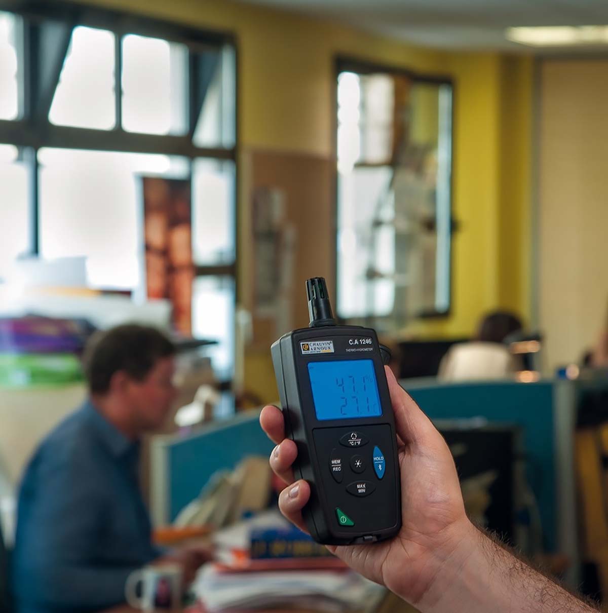 This is C.A 1246 Thermohygrometer +140 °F +60 °C manufactured by Chauvin Arnoux. The manufacturer part number is P01654246. The typical product's weight is 260g. Whereas, the minimum operating temperature of the product is -10°c. It has a maximum operating temperature of +60°c.