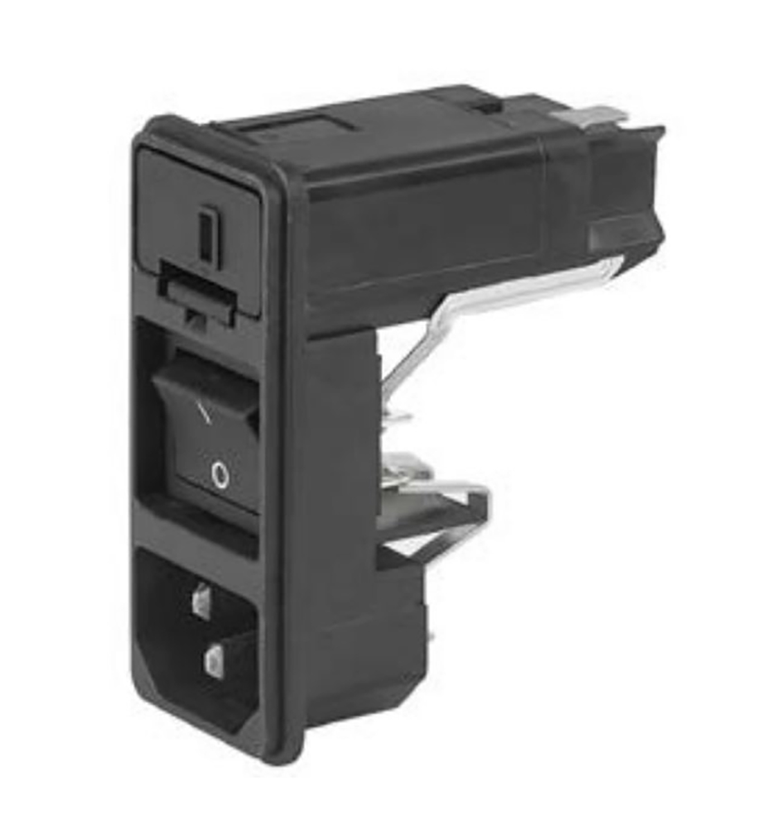 This is C14 Snap-In IEC Connector manufactured by Schurter. The manufacturer part number is KD14.1101.109. The product has a current rating of 10a. The product is available in snap-in configuration. Moreover, the product has a nominal 125 v, 250 v voltage rating. In addition, male is the available "Gender" of the product. A fuse with a 5 x 20 mm, 6.3 x 32mm size. Quality product with a 2 pole switch type.