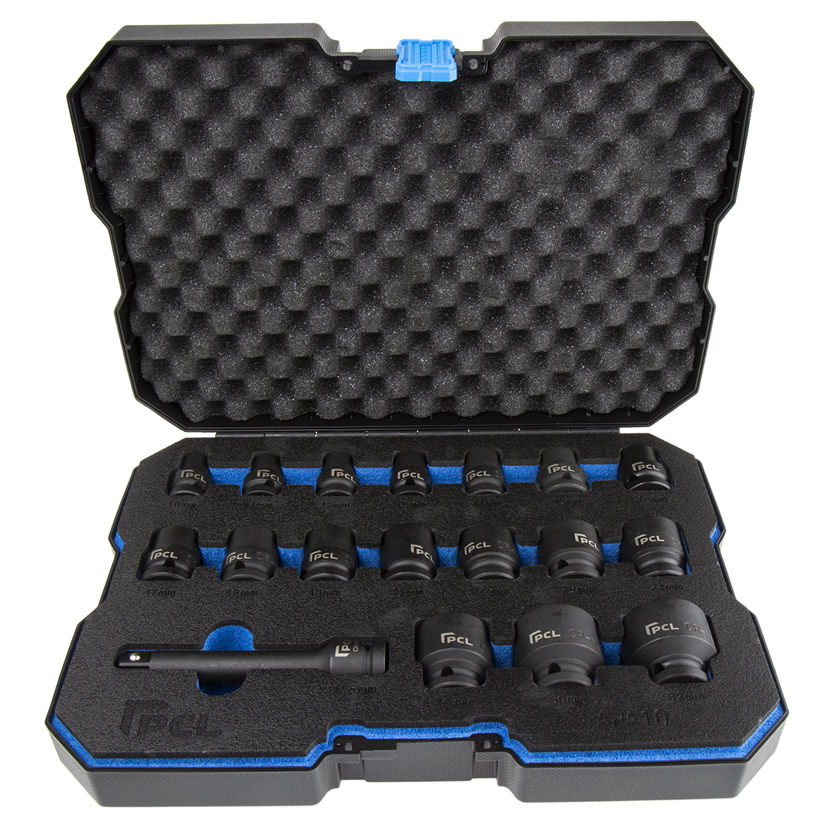This is 1/2 Air Impact socket set - 18 piece manufactured by RS Pro. The manufacturer part number is 137-0908. A quality product with a nice chrome finish. The product is made from highly stable and reliable chrome molybdenum steel. The product has a drive size of 1/2 in. The product features a square drive.
