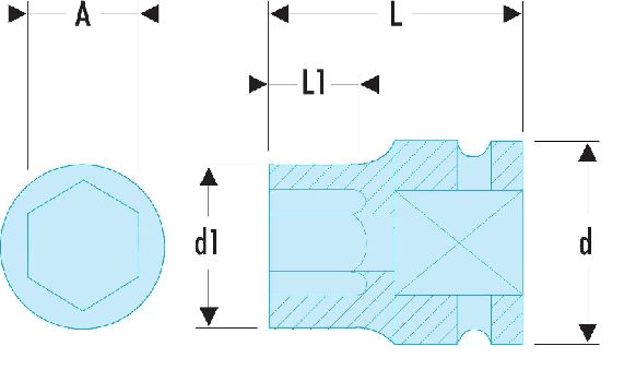 This is 22mm 1/2 in Drive Impact Socket Bi-Hexagon 38 mm length manufactured by Facom. The manufacturer part number is NSD.22B. The product features a square drive. The product has a drive size of 1/2 in.