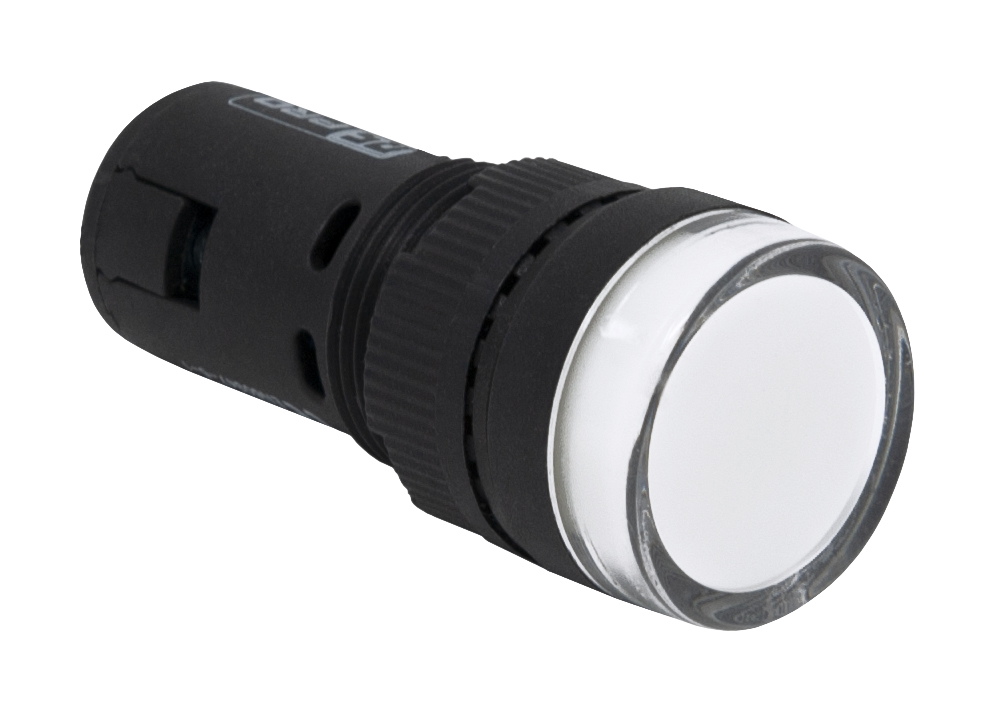 This is White LED Pilot Light 16mm Cutout IP40 Round 230 V ac 20 mA manufactured by RS Pro. The manufacturer part number is 909-2465.