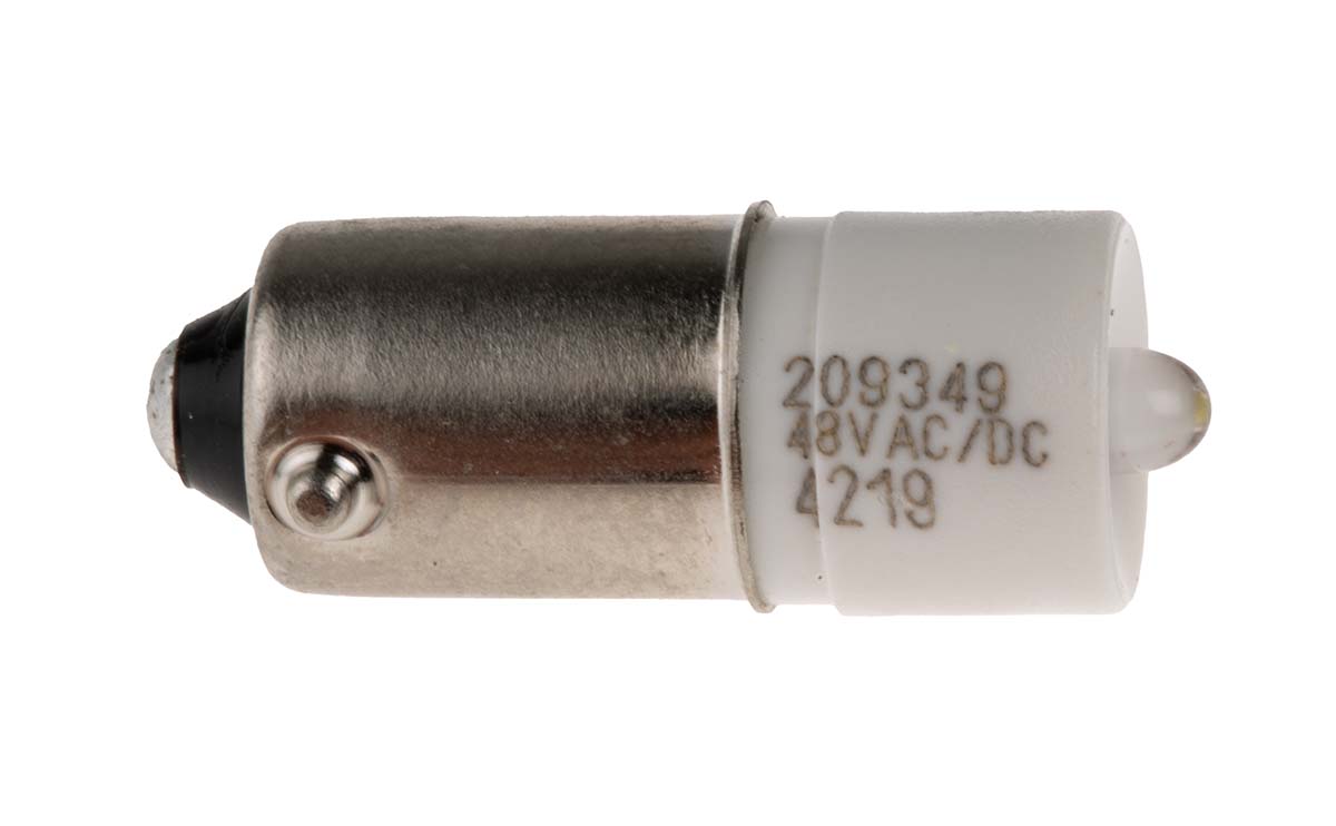 This is LED Reflector Bulb BA9s White Single Chip 10mm dia. 48 V ac/dc manufactured by RS Pro. The manufacturer part number is 209-349. Its diameter is 10mm. Moreover, the product has a nominal 48v ac/dc voltage rating. Its accurate length is 24mm. It is a type of led lamp.