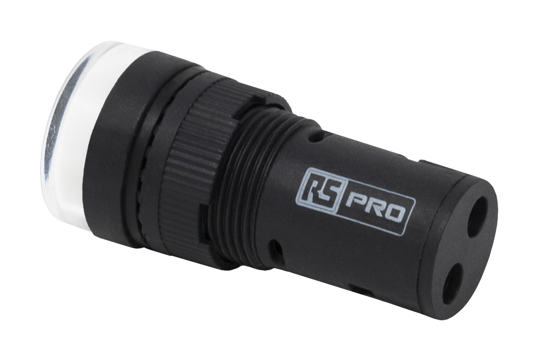 This is White LED Pilot Light 16mm Cutout IP40 Round 12 V ac/dc 20 mA manufactured by RS Pro. The manufacturer part number is 909-2459.