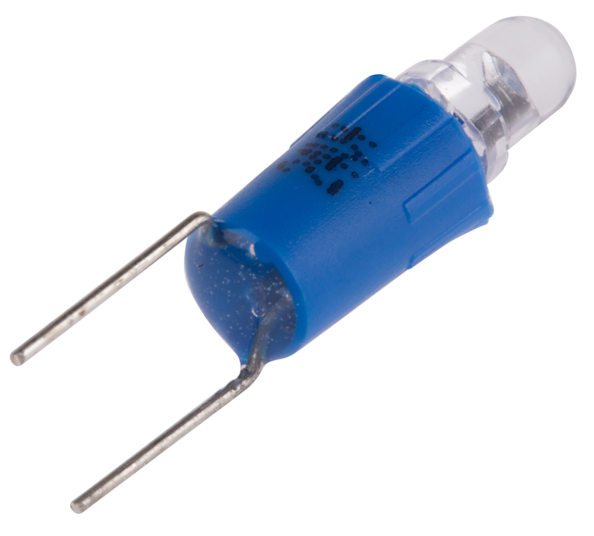 This is LED Reflector Bulb bi-pin Blue Single Chip 3 mm Lamp 4.25mm dia. 24 V ac/dc manufactured by RS Pro. The manufacturer part number is 210-844. Its diameter is 4.25mm. Moreover, the product has a nominal 24v ac/dc voltage rating. Its accurate length is 17mm. It is a type of led lamp.
