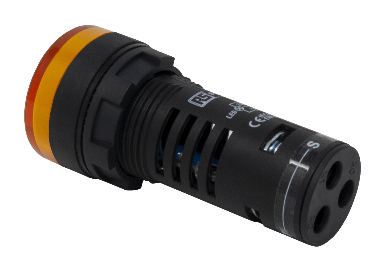 This is Yellow LED Pilot Light Complete With Test Circuit 22mm Cutout IP65 Round 120 V ac/dc 20 mA manufactured by RS Pro. The manufacturer part number is 909-2540.