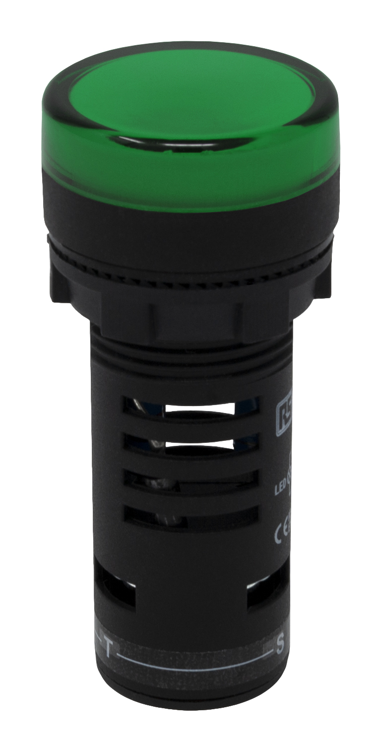 This is Green LED Pilot Light Complete With Test Circuit 22mm Cutout IP65 Round 24 V ac/dc 20 mA manufactured by RS Pro. The manufacturer part number is 909-2503.