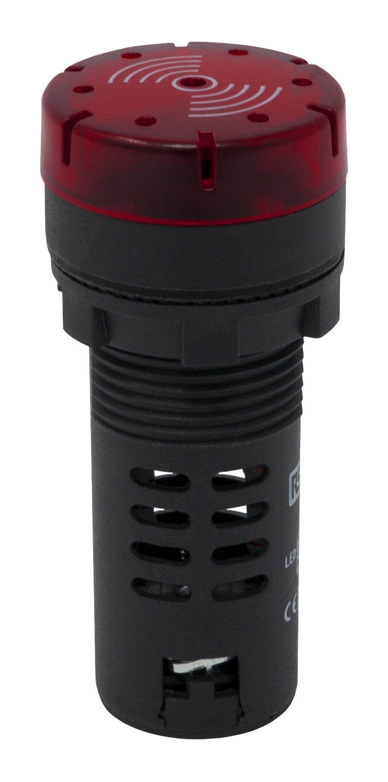 This is Red LED Pilot Light Complete With Sounder 22mm Cutout IP30 Round 24 V ac/dc 20 mA manufactured by RS Pro. The manufacturer part number is 909-2556.