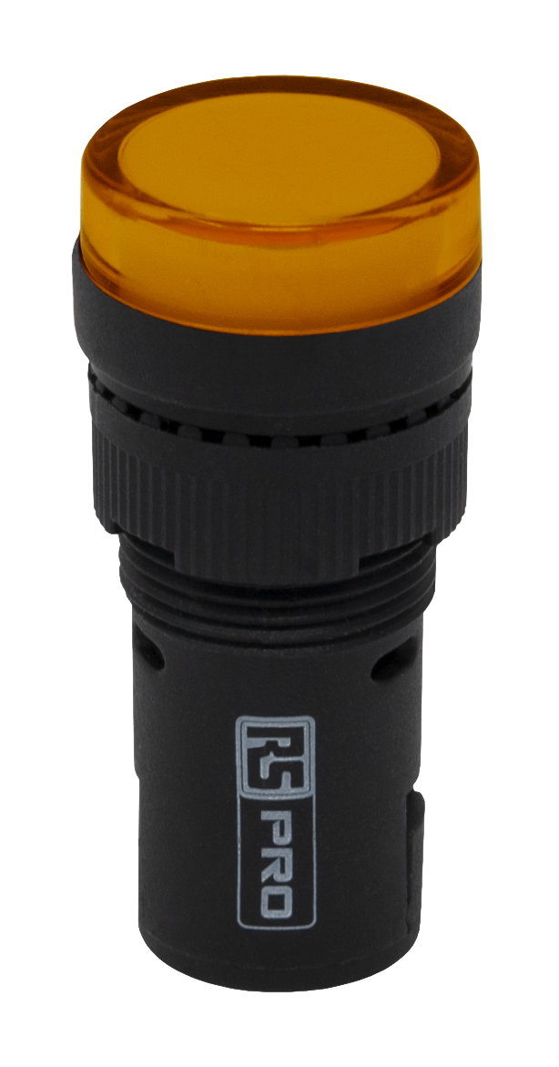 This is Yellow LED Pilot Light 16mm Cutout IP40 Round 230 V ac 20 mA manufactured by RS Pro. The manufacturer part number is 909-2480.