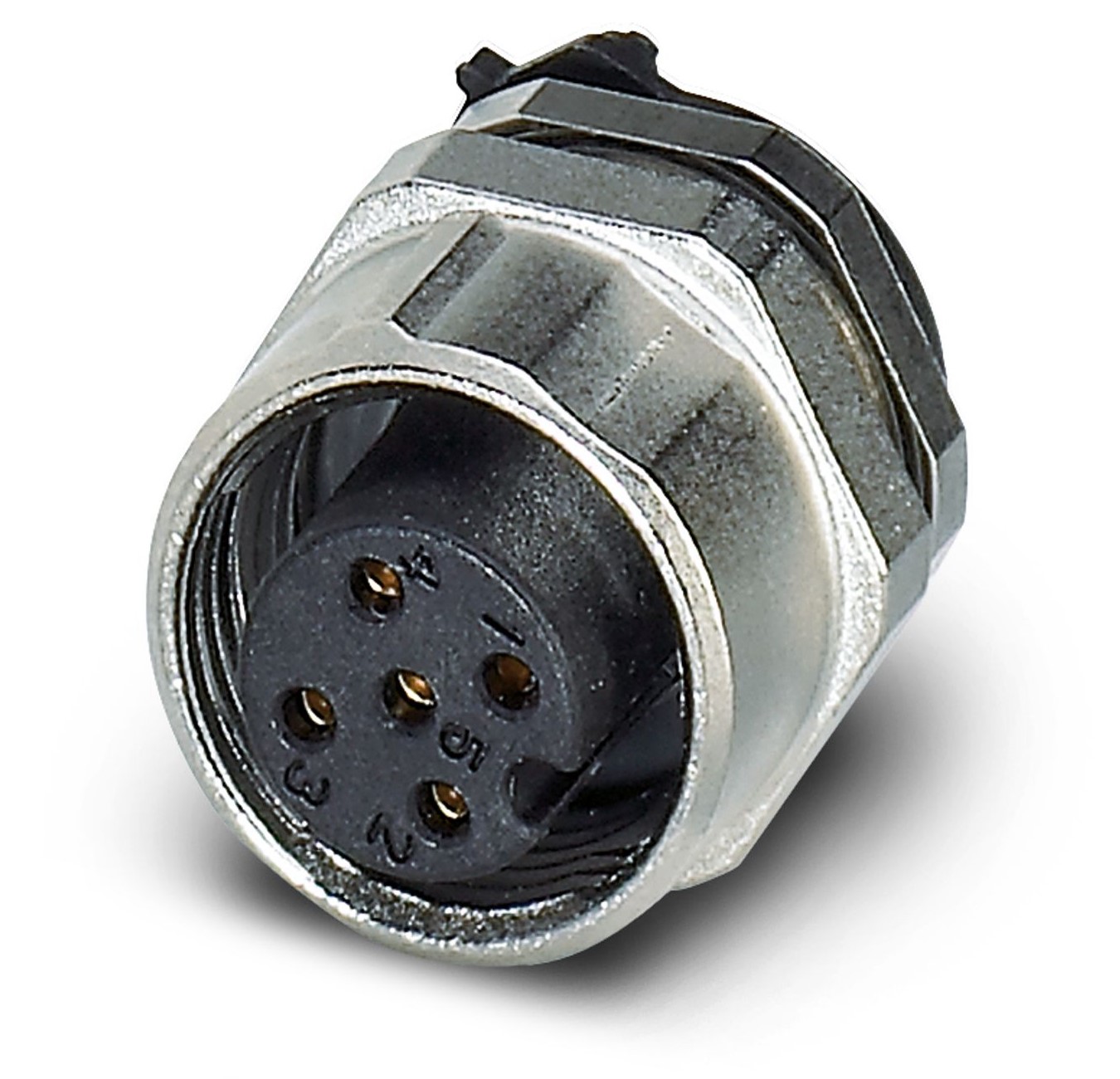 This is manufactured by Phoenix Contact. The manufacturer part number is 1542622. It is assigned with possible HTSUS value of 8536.69.4020. The product is rohs compliant. The product's mounting feature includes bulkhead - rear side nut. The product has -25°c ~ 85°c operating temperature range. The product carries possible position value of 5. It has nice contact finishing of gold. Moreover, the product has a nominal 60v voltage rating. Additionally, the product's output is 4a The basic product material is metal. It carries ul94 v-0 of material flammability rating. It is shipped in tray. The insert's size is m12-5. receptacle, female sockets Connector type offer robust functionality. Its typical moisture sensitivity level is 1 (unlimited). Furthermore, push-twist is the Fastening Type of the product. It is made from highly reliable zinc die cast materials. The product features solder termination style. It has a long 22 weeks standard lead time. While it is also supplied with highly stable polyphthalamide (ppa) insert material. The product has a a orientation. It is IP rated with ip67 - dust tight, waterproof. The splendid features of the product include board guide. The product is available in panel mount, through hole configuration. The shell is an excellent finishing of nickel. It has a classic silver colour. The product dsiv, is a highly preferred choice for users. The product is made from sturdy copper zinc materials. The product is designated with the ear99 code number