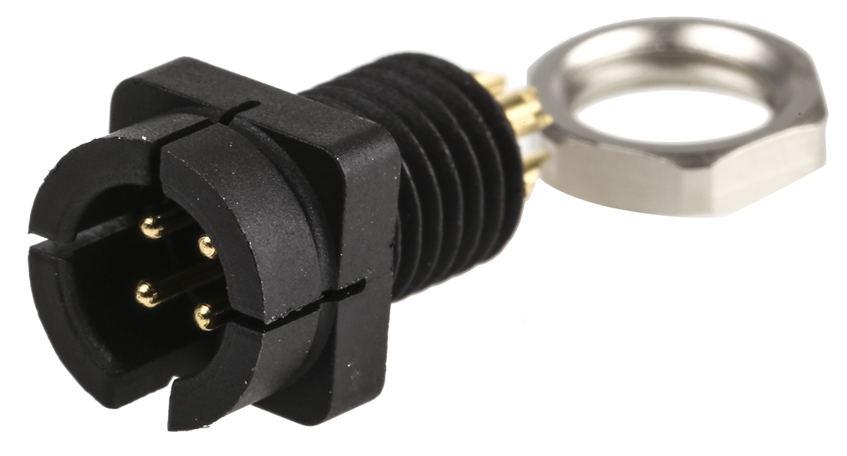 This is 4 Pole Panel Mount Connector with Male Contacts manufactured by Binder. The manufacturer part number is 09-9765-30-04. The product has a current rating of 3.0a. The product is available in panel mount configuration. Moreover, the product has a nominal 60 v voltage rating. The product 719, is a highly preferred choice for users. The product contains 4 contacts. It has a maximum operating temperature of +70°c. Whereas, the minimum operating temperature of the product is -25°c. The product is made from sturdy brass materials.