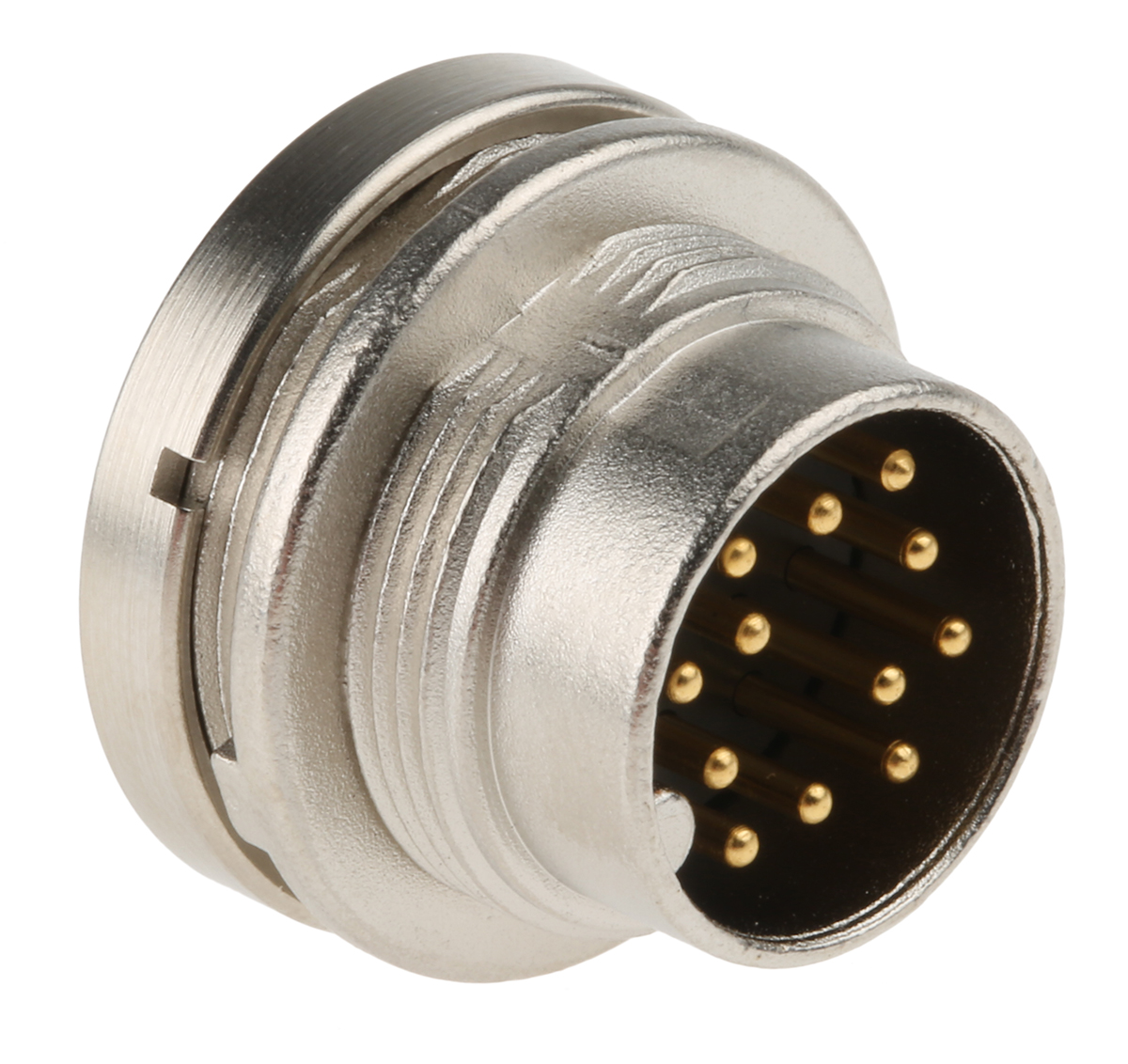 This is 12 Pole Panel Mount Miniature Connector Socket Male Contacts manufactured by Binder. The manufacturer part number is 09-0331-00-12. The product has a current rating of 3.0a. Whereas, the minimum operating temperature of the product is -40°c. The product is available in panel mount configuration. Moreover, the product has a nominal 60 v voltage rating. The product 680, is a highly preferred choice for users. The product contains 12 contacts. It has a maximum operating temperature of +85°c. The product is made from sturdy brass materials.
