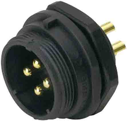 This is 4 Pole Panel Mount Circular Connector Socket Male Contacts IP68 manufactured by RS Pro. The manufacturer part number is 131-6372. The product has a current rating of 30.0a. The product is available in panel mount configuration. Moreover, the product has a nominal 500 v voltage rating. The product also features robust nylon housing material. The product contains 4 contacts. It has a maximum operating temperature of +85°c. Whereas, the minimum operating temperature of the product is -25°c. The product is made from sturdy brass materials.