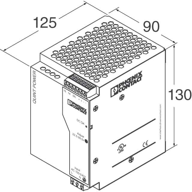 This is manufactured by Phoenix Contact. The manufacturer part number is 2866721. Additionally, the product is supplied with 1 outputs. Load Regulation - ±1%. The product is available in din rail mount configuration. It is a highly efficient product with an >90% of high efficiency. The product quint-ps/1ac/12dc/20, is a highly preferred choice for users. In addition, the height is 130mm. Furthermore, the product is 90mm wide. The product comes in 130mm depth. It comes in switch mode configuration. It is assigned with possible HTSUS value of 8504.40.6018. The product is rohs compliant. The product features power and watts of 240w. The maximum product's output current is 20a. It is approved by cb, culus, curus. It carries ac input type. The product is widely employed in ite (commercial). It has a 12v output voltage. It is a highly efficient product with an 90% of high efficiency. It is shipped in box. Does it require minimum load? no. The product's diameters include 4.92" l x 3.54" w x 5.12" h (125.0mm x 90.0mm x 130.0mm). 4 kv of isolation voltage. Its typical moisture sensitivity level is not applicable. The splendid features of the product include adjustable output, ip20, load sharing, universal input. The product quint, is a highly preferred choice for users. The product has -25°c ~ 70°c (with derating) operating temperature range. The product is designated with the ear99 code number