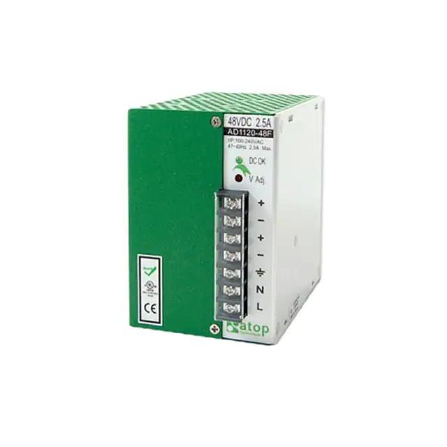 This is manufactured by ATOP Technologies. The manufacturer part number is AD1120-48F. It is assigned with possible HTSUS value of 8504.40.6018. The product is rohs3 compliant. It has a 48v output voltage. The product features power and watts of 120w. The maximum product's output current is 2.5a. It is approved by cb, ce, culus. It carries ac input type. The product is widely employed in ite (commercial). In addition, it is reach unaffected. It is a highly efficient product with an 82% of high efficiency. It is shipped in box. The product's diameters include 4.76" l x 2.95" w x 4.33" h (121.0mm x 75.0mm x 110.0mm). It has a long 4 weeks standard lead time. Its typical moisture sensitivity level is not applicable. The splendid features of the product include adjustable output. The product has -20°c ~ 50°c operating temperature range. Moreover, it corresponds to ad1120, a base product number of the product. Additionally, the product is supplied with 1 outputs. The product is designated with the ear99 code number