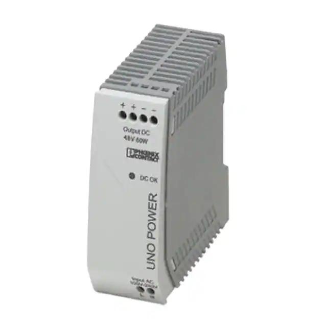 This is manufactured by Phoenix Contact. The manufacturer part number is 2902995. Additionally, the product is supplied with 2 outputs. Load Regulation - < 1 (static) %, < 2 (dynamic) %. The product is available in din rail mount configuration. It is a highly efficient product with an 89% of high efficiency. The product uno-ps/1ac/48dc/60w, is a highly preferred choice for users. In addition, the height is 90mm. Furthermore, the product is 84mm wide. The product comes in 90mm depth. It comes in switch mode configuration. It is assigned with possible HTSUS value of 8504.40.9520. The product is rohs compliant. The product features power and watts of 60w. The maximum product's output current is 1.25a. It is approved by cb, cul, culus, cur, curus, ul, ur. It carries ac input type. The product is widely employed in ite (commercial). It has a 48v output voltage. It is a highly efficient product with an 90% of high efficiency. It is shipped in bulk. The product's diameters include 3.31" l x 1.38" w x 3.54" h (84.0mm x 35.0mm x 90.0mm). It has a long 8 weeks standard lead time. 4 kv of isolation voltage. Its typical moisture sensitivity level is not applicable. The splendid features of the product include ip20, universal input. The product uno, is a highly preferred choice for users. The product has -25°c ~ 70°c (with derating) operating temperature range. Additionally, the product is supplied with 1 outputs. The product is designated with the ear99 code number