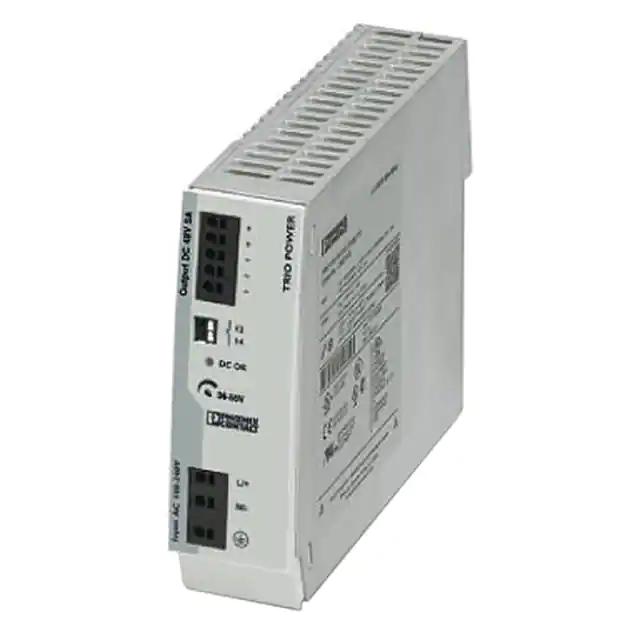 This is manufactured by Phoenix Contact. The manufacturer part number is 2903159. Additionally, the product is supplied with 2 outputs. The product is available in din rail mount configuration. It is a highly efficient product with an 91% of high efficiency. The product trio-ps-2g/1ac/48dc/5, is a highly preferred choice for users. In addition, the height is 130mm. Furthermore, the product is 42mm wide. The product comes in 160mm depth. It comes in switch mode configuration. It is assigned with possible HTSUS value of 8504.40.9530. The product is rohs compliant. The product features power and watts of 240w. The maximum product's output current is 5a. It is approved by cul, ul. It carries ac or dc input type. The product is widely employed in industrial, ite (commercial). It has a 48v output voltage. It is shipped in box. The product's diameters include 6.30" l x 1.65" w x 5.12" h (160.0mm x 42.0mm x 130.0mm). It has a long 14 weeks standard lead time. 3 kv of isolation voltage. Its typical moisture sensitivity level is not applicable. The splendid features of the product include adjustable output, ip20, universal input. The product trio, is a highly preferred choice for users. The product has -25°c ~ 70°c (with derating) operating temperature range. Additionally, the product is supplied with 1 outputs. The product is designated with the ear99 code number