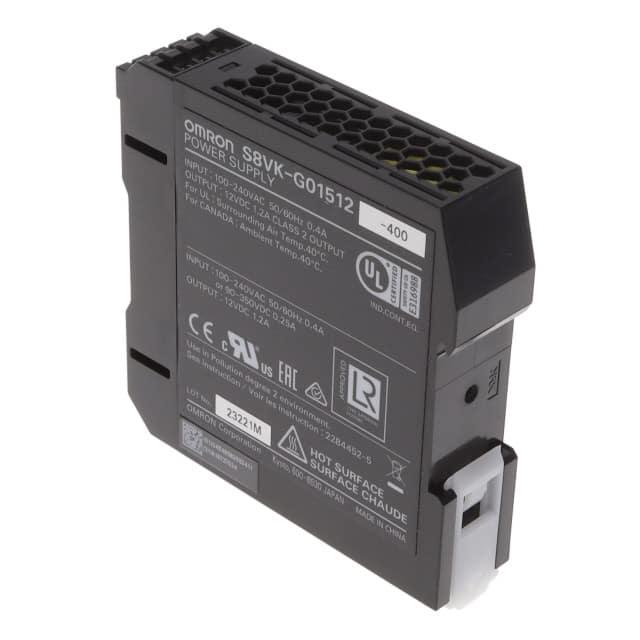 This is manufactured by Omron Automation and Safety. The manufacturer part number is S8VK-G01512-400. It is assigned with possible HTSUS value of 8504.40.6018. Additionally, the product is supplied with 1 outputs. The product features power and watts of 15w. The maximum product's output current is 1.2a. It is approved by ce, culus, curus, tuv. It carries ac input type. The product is widely employed in ite (commercial). It has a 12v output voltage. It is a highly efficient product with an 77% of high efficiency. It is shipped in bulk. The product's diameters include 3.54" l x 0.89" w x 3.54" h (90.0mm x 22.5mm x 90.0mm). It has a long 10 weeks standard lead time. 3 v of isolation voltage. Its typical moisture sensitivity level is not applicable. The splendid features of the product include adjustable output, pfc, universal input. The product s8vk-g (15w), is a highly preferred choice for users. The product has -40°c ~ 70°c (with derating) operating temperature range. Moreover, it corresponds to s8vk-g015, a base product number of the product. The product is designated with the ear99 code number