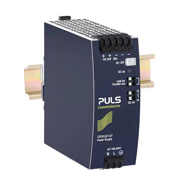 This is manufactured by PULS, LP. The manufacturer part number is CP20.241-S1. Moreover, it corresponds to cp20, a base product number of the product. It is assigned with possible HTSUS value of 8504.40.9530. The product is rohs compliant. The product features power and watts of 480w. The maximum product's output current is 20a. It is approved by atex, eac, iec, iecex, ul. It carries ac or dc input type. The product is widely employed in hazardous locations, industrial, ite (commercial). It has a 24v output voltage. It is a highly efficient product with an 95.6% of high efficiency. It is shipped in box. The product's diameters include 5.00" l x 1.89" w x 4.88" h (127.0mm x 48.0mm x 124.0mm). It has a long 16 weeks standard lead time. Its typical moisture sensitivity level is not applicable. The splendid features of the product include adjustable output, pfc, universal input. The product dimension cp (480w), is a highly preferred choice for users. The product has -25°c ~ 70°c (with derating) operating temperature range. Standard number include: class i div 2; 61010-2-201. Additionally, the product is supplied with 1 outputs. The product is designated with the ear99 code number