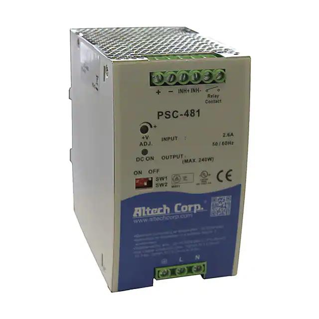 This is manufactured by Altech Corporation. The manufacturer part number is PSC-48148. It is assigned with possible HTSUS value of 8504.40.6018. The product is rohs3 compliant. The product features power and watts of 480w. The maximum product's output current is 10a. It is approved by ce, culus, tuv. It carries ac or dc input type. The product is widely employed in industrial, ite (commercial). It has a 48v output voltage. It is a highly efficient product with an 94% of high efficiency. It is shipped in box. Does it require minimum load? no. The product's diameters include 4.86" l x 3.40" w x 4.91" h (123.4mm x 86.3mm x 124.8mm). 4.242 kv of isolation voltage. Its typical moisture sensitivity level is 1 (unlimited). The splendid features of the product include adjustable output, pfc, remote on/off, universal input. The product psc-481 (480w), is a highly preferred choice for users. The product has -20°c ~ 70°c (with derating) operating temperature range. Standard number include: 508; 60950-1. Additionally, the product is supplied with 1 outputs. The product is designated with the ear99 code number