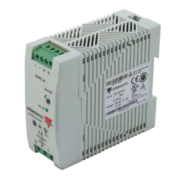 This is manufactured by Carlo Gavazzi Inc.. The manufacturer part number is SPDM24751. It is assigned with possible HTSUS value of 8504.40.9520. The product is rohs compliant. It has a 24v output voltage. The product features power and watts of 72w. The maximum product's output current is 3a. It is approved by ce, culus, tuv. It carries ac or dc input type. The product is widely employed in industrial, ite (commercial). In addition, it is reach unaffected. It is a highly efficient product with an 89% of high efficiency. It is shipped in box. Does it require minimum load? no. The product's diameters include 3.94" l x 1.59" w x 3.60" h (100.0mm x 40.5mm x 90.0mm). 3 kv of isolation voltage. Its typical moisture sensitivity level is not applicable. The splendid features of the product include adjustable output, ip20, universal input. The product spdm (75w), is a highly preferred choice for users. The product has -25°c ~ 71°c (with derating) operating temperature range. Moreover, it corresponds to spdm24, a base product number of the product. Additionally, the product is supplied with 1 outputs. The product is designated with the ear99 code number