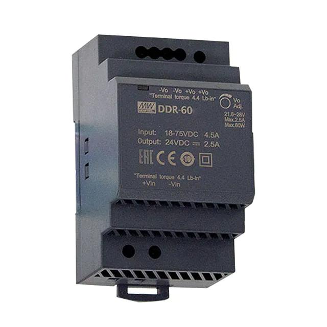 This is manufactured by Mean Well USA Inc.. The manufacturer part number is DDR-60L-12. It is assigned with possible HTSUS value of 8504.40.9580. The product is rohs3 compliant. It has a 12v output voltage. The product features power and watts of 60w. The maximum product's output current is 5a. It is approved by ce, eac. It carries dc input type. The product is widely employed in ite (commercial). In addition, it is reach unaffected. It is a highly efficient product with an 91% of high efficiency. It is shipped in box. Does it require minimum load? no. The product's diameters include 2.15" l x 2.07" w x 3.54" h (54.5mm x 52.5mm x 90.0mm). It has a long 23 weeks standard lead time. 4 kv of isolation voltage. Its typical moisture sensitivity level is 1 (unlimited). The splendid features of the product include adjustable output. The product ddr-60 (60w), is a highly preferred choice for users. The product has -40°c ~ 85°c (with derating) operating temperature range. Moreover, it corresponds to ddr-60, a base product number of the product. Additionally, the product is supplied with 1 outputs. The product is designated with the ear99 code number
