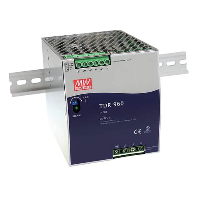 This is manufactured by Mean Well USA Inc.. The manufacturer part number is TDR-960-24. It is assigned with possible HTSUS value of 8504.40.9540. The product is rohs3 compliant. It has a 24v output voltage. The product features power and watts of 960w. The maximum product's output current is 40a. It is approved by cb, ce, culus. It carries ac or dc input type. The product is widely employed in industrial, ite (commercial). In addition, it is reach unaffected. It is a highly efficient product with an 94% of high efficiency. It is shipped in box. Does it require minimum load? no. The product's diameters include 5.91" l x 4.33" w x 4.93" h (150.0mm x 110.0mm x 125.2mm). It has a long 23 weeks standard lead time. 3 kv of isolation voltage. Its typical moisture sensitivity level is 1 (unlimited). The splendid features of the product include adjustable output, pfc. The product tdr-960 (960w), is a highly preferred choice for users. The product has -30°c ~ 70°c (with derating) operating temperature range. Moreover, it corresponds to tdr-960, a base product number of the product. Additionally, the product is supplied with 1 outputs. The product is designated with the ear99 code number