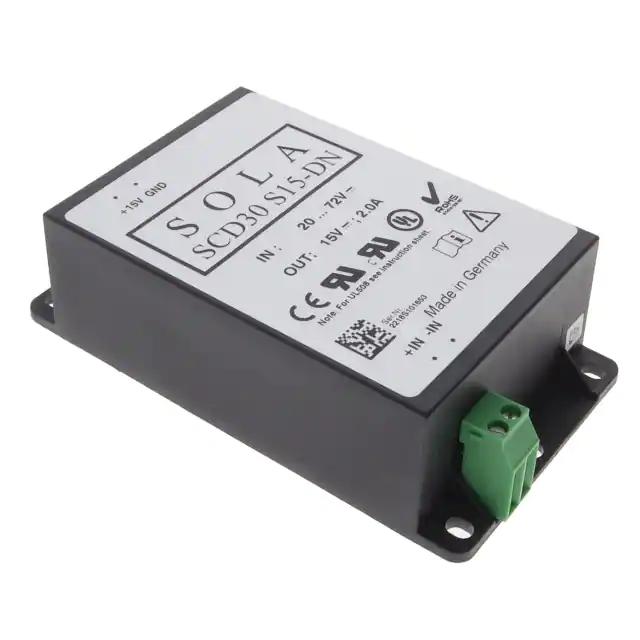 This is manufactured by SolaHD. The manufacturer part number is SCD30S15-DN. It is assigned with possible HTSUS value of 8504.40.9580. The product is rohs compliant. The product features power and watts of 30w. The maximum product's output current is 2a. It is approved by ce, culus, curus. It carries dc input type. The product is widely employed in industrial, ite (commercial). It has a 15v output voltage. It is shipped in bulk. Does it require minimum load? no. The product's diameters include 2.55" l x 1.29" w x 4.51" h (64.8mm x 32.8mm x 115.0mm). It has a long 12 weeks standard lead time. Its typical moisture sensitivity level is 1 (unlimited). The splendid features of the product include ip20. The product scd, is a highly preferred choice for users. The product has -25°c ~ 65°c operating temperature range. Moreover, it corresponds to scd30s15, a base product number of the product. Additionally, the product is supplied with 1 outputs. The product is designated with the ear99 code number