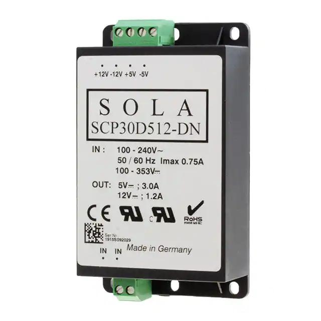 This is SCP DIN Rail Power Supply 30W 1.2 A 3 A manufactured by SolaHD. The manufacturer part number is SCP30D512-DN. Additionally, the product is supplied with 2 outputs. The product is available in din rail mount configuration. The product scp, is a highly preferred choice for users. In addition, the height is 120mm. The product comes in 33mm depth. It is assigned with possible HTSUS value of 8504.40.9510. The product is rohs compliant. The product features power and watts of 29w. The maximum product's output current is 3a, 1.2a. It is approved by ce, curus. It carries ac or dc input type. The product is widely employed in ite (commercial). It has a 5v output voltage. 12v of voltage output 2. It is a highly efficient product with an 68% of high efficiency. It is shipped in bulk. Does it require minimum load? yes. The product's diameters include 2.55" l x 1.29" w x 4.71" h (65.0mm x 33.0mm x 120.0mm). It has a long 12 weeks standard lead time. Its typical moisture sensitivity level is 1 (unlimited). The splendid features of the product include ip20, universal input. The product scp (30w), is a highly preferred choice for users. The product has -25°c ~ 65°c operating temperature range. Moreover, it corresponds to scp30, a base product number of the product. The product is designated with the ear99 code number