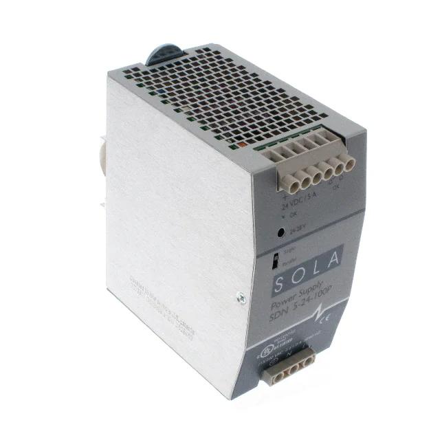 This is SDN-P PSU 120W 24V dc/ 5A manufactured by SolaHD. The manufacturer part number is SDN5-24-100P. Additionally, the product is supplied with 1 outputs. The product is available in din rail mount configuration. The product sdn-p, is a highly preferred choice for users. In addition, the height is 123mm. Furthermore, the product is 124mm wide. The product comes in 111mm depth. It is assigned with possible HTSUS value of 8504.40.9520. The product is rohs compliant. The product features power and watts of 120w. The maximum product's output current is 5a. It is approved by ce, culus, curus. It carries ac or dc input type. The product is widely employed in hazardous locations, industrial, ite (commercial). It has a 24v output voltage. It is a highly efficient product with an 88% of high efficiency. It is shipped in bulk. The product's diameters include 4.55" l x 2.56" w x 4.88" h (115.6mm x 65.0mm x 124.0mm). It has a long 12 weeks standard lead time. Its typical moisture sensitivity level is 1 (unlimited). The splendid features of the product include adjustable output, ip20. The product has -10°c ~ 70°c (with derating) operating temperature range. Moreover, it corresponds to sdn5, a base product number of the product. The product is designated with the ear99 code number
