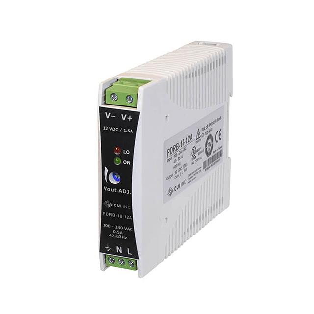 This is manufactured by CUI Inc.. The manufacturer part number is PDRB-18-24A. Moreover, it corresponds to pdrb-18, a base product number of the product. It is assigned with possible HTSUS value of 8504.40.9510. The product is rohs compliant. The product features power and watts of 18w. The maximum product's output current is 750ma. It is approved by en, siq, tuv, ul. It carries ac or dc input type. The product is widely employed in industrial, ite (commercial). It has a 24v output voltage. It is a highly efficient product with an 77% of high efficiency. It is shipped in box. The product's diameters include 4.49" l x 0.89" w x 3.54" h (114.0mm x 22.5mm x 90.0mm). 3 kv of isolation voltage. Its typical moisture sensitivity level is not applicable. The splendid features of the product include adjustable output, ip20, universal input. The product pdrb-18 (18w), is a highly preferred choice for users. The product has -20°c ~ 71°c (with derating) operating temperature range. Standard number include: 508; 1310; 55024; 55032 class b; 60950-1; 61000-3-2; 61000-3-3; 61000-6-2; 61000-6-3; 61204-3; 62368-1. Additionally, the product is supplied with 1 outputs. The product is designated with the ear99 code number