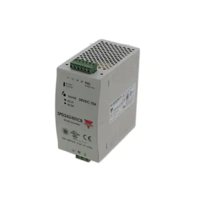 This is manufactured by Carlo Gavazzi Inc.. The manufacturer part number is SPD242401CB. It is assigned with possible HTSUS value of 8504.40.9530. Additionally, the product is supplied with 1 outputs. It has a 24v output voltage. The product features power and watts of 240w. The maximum product's output current is 10a. It is approved by ce, culus, curus, tuv. It carries ac or dc input type. The product is widely employed in industrial, ite (commercial). In addition, it is reach unaffected. It is a highly efficient product with an 93% of high efficiency. It is shipped in box. Does it require minimum load? no. The product's diameters include 4.56" l x 2.52" w x 4.90" h (115.8mm x 64.0mm x 124.5mm). 3 kv of isolation voltage. Its typical moisture sensitivity level is not applicable. The splendid features of the product include adjustable output, ip20, pfc, universal input. The product spd (240w), is a highly preferred choice for users. The product has -40°c ~ 71°c (with derating) operating temperature range. Moreover, it corresponds to spd24, a base product number of the product. The product is designated with the ear99 code number