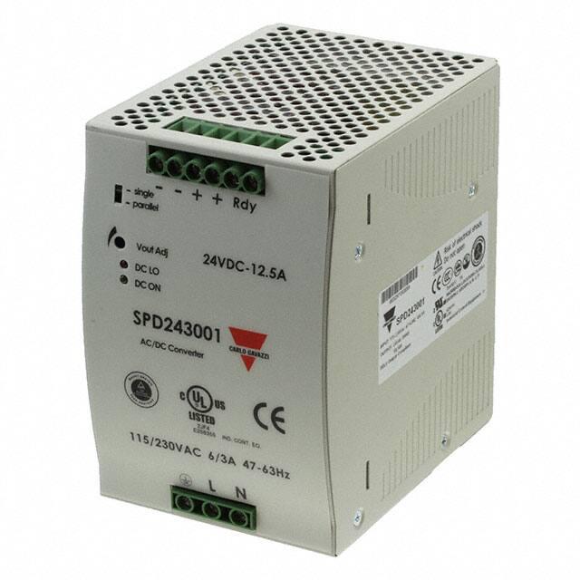 This is manufactured by Carlo Gavazzi Inc.. The manufacturer part number is SPD243001. It is assigned with possible HTSUS value of 8504.40.9530. Additionally, the product is supplied with 1 outputs. It has a 24v output voltage. The product features power and watts of 300w. The maximum product's output current is 12.5a. It is approved by ce, culus, tuv. It carries ac or dc input type. The product is widely employed in hazardous locations, industrial, ite (commercial). In addition, it is reach unaffected. It is a highly efficient product with an 89% of high efficiency. It is shipped in box. Does it require minimum load? yes. The product's diameters include 4.59" l x 3.29" w x 4.90" h (116.6mm x 83.6mm x 124.5mm). Its typical moisture sensitivity level is not applicable. The splendid features of the product include adjustable output, ip20, pfc. The product spd (300w), is a highly preferred choice for users. The product has -30°c ~ 71°c (with derating) operating temperature range. Moreover, it corresponds to spd24, a base product number of the product. The product is designated with the ear99 code number