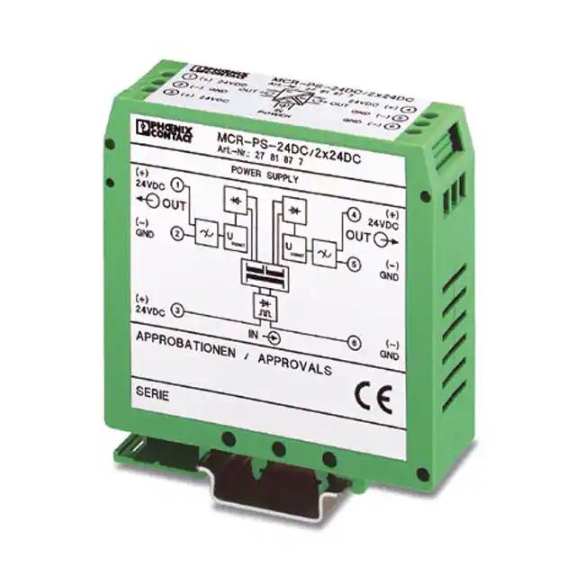 This is manufactured by Phoenix Contact. The manufacturer part number is 2781877. It is assigned with possible HTSUS value of 8504.40.9580. The product is rohs3 compliant. The product features power and watts of 1.44w. It is approved by ce. It carries dc input type. In addition, it is reach unaffected. It is shipped in bulk. The product's diameters include 3.37" l x 0.98" w x 3.11" h (85.5mm x 25.0mm x 79.0mm). Its typical moisture sensitivity level is not applicable. The product has 0°c ~ 55°c operating temperature range. Additionally, the product is supplied with 2 outputs. The product is designated with the ear99 code number