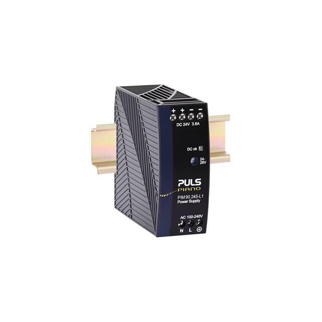 This is manufactured by PULS, LP. The manufacturer part number is PIM90.245-L1. Moreover, it corresponds to pim90, a base product number of the product. It is assigned with possible HTSUS value of 8504.40.9520. The product is rohs compliant. It has a 24v output voltage. The product features power and watts of 91w. The maximum product's output current is 3.8a. It is approved by cb, ce, culus. It carries ac input type. The product is widely employed in ite (commercial), laboratory. In addition, it is reach affected. It is a highly efficient product with an 93.8% of high efficiency. It is shipped in box. The product's diameters include 3.58" l x 1.42" w x 3.54" h (91.0mm x 36.0mm x 90.0mm). It has a long 13 weeks standard lead time. Its typical moisture sensitivity level is not applicable. The splendid features of the product include adjustable output, pfc, universal input. The product piano (90w), is a highly preferred choice for users. The product has -10°c ~ 70°c (with derating) operating temperature range. Standard number include: 61010-1; 62368-1. Additionally, the product is supplied with 1 outputs. The product is designated with the ear99 code number