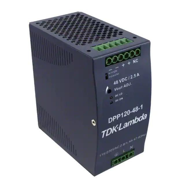 This is manufactured by TDK-Lambda Americas Inc. The manufacturer part number is DPP120-48-1. It is assigned with possible HTSUS value of 8504.40.6018. The product is rohs compliant. It has a 48v output voltage. The product features power and watts of 120w. The maximum product's output current is 2.5a. It is approved by ce. It carries ac input type. The product is widely employed in ite (commercial). In addition, it is reach unaffected. It is a highly efficient product with an 87% of high efficiency. It is shipped in bulk. The product's diameters include 4.59" l x 2.50" w x 4.92" h (116.6mm x 63.5mm x 125.0mm). It has a long 70 weeks standard lead time. 3 kv of isolation voltage. Its typical moisture sensitivity level is not applicable. The splendid features of the product include adjustable output, load sharing. The product dpp (120w), is a highly preferred choice for users. The product has -40°c ~ 71°c (with derating) operating temperature range. Moreover, it corresponds to dpp120, a base product number of the product. Additionally, the product is supplied with 1 outputs. The product is designated with the ear99 code number