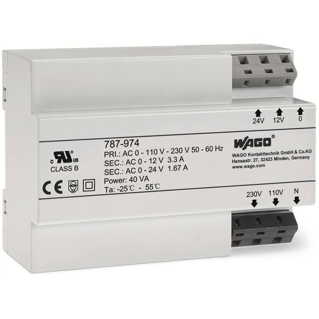 This is manufactured by WAGO Corporation. The manufacturer part number is 787-974. The product is rohs3 compliant. The maximum product's output current is 3.3a. It is approved by ce, curus, eac, ul. It carries ac input type. The product is widely employed in ite (commercial). It has a 12v output voltage. It is shipped in box. The product's diameters include 2.13" l x 4.96" w x 3.54" h (54.0mm x 126.0mm x 90.0mm). It has a long 12 weeks standard lead time. 4.2 kv of isolation voltage. Its typical moisture sensitivity level is not applicable. The splendid features of the product include ip20. The product has -25°c ~ 55°c operating temperature range. Additionally, the product is supplied with 1 outputs.