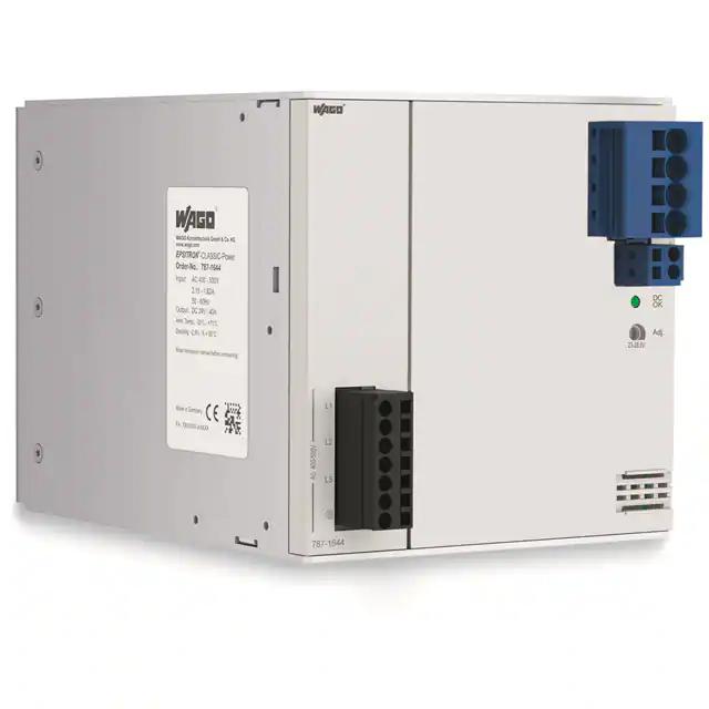 This is manufactured by WAGO Corporation. The manufacturer part number is 787-1644. It is assigned with possible HTSUS value of 8504.40.9540. The product is rohs3 compliant. The product features power and watts of 960w. The maximum product's output current is 40a. It is approved by curus, eac, ul. It carries ac or dc input type. The product is widely employed in industrial, ite (commercial), laboratory. It has a 24v output voltage. It is a highly efficient product with an 92% of high efficiency. It is shipped in box. The product's diameters include 7.80" l x 4.96" w x 5.00" h (198.0mm x 126.0mm x 127.0mm). It has a long 12 weeks standard lead time. 4.242 kv of isolation voltage. Its typical moisture sensitivity level is not applicable. The splendid features of the product include adjustable output, ip20, pfc, universal input. The product has -25°c ~ 70°c operating temperature range. Standard number include: 60950-1; 61010-1; ul 508. Additionally, the product is supplied with 1 outputs. The product is designated with the ear99 code number