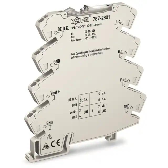 This is manufactured by WAGO Corporation. The manufacturer part number is 787-2801. It is assigned with possible HTSUS value of 8504.40.9580. The product is rohs3 compliant. The product features power and watts of 2.5w. The maximum product's output current is 500ma. It is approved by ce, eac, ul. It carries dc input type. The product is widely employed in ite (commercial). It has a 5v output voltage. It is a highly efficient product with an 82.5% of high efficiency. It is shipped in bag. The product's diameters include 3.85" l x 0.24" w x 3.70" h (97.8mm x 6.0mm x 94.0mm). It has a long 12 weeks standard lead time. Its typical moisture sensitivity level is not applicable. The splendid features of the product include adjustable output, ip20. The product has -25°c ~ 70°c operating temperature range. Standard number include: 60950-1. Additionally, the product is supplied with 1 outputs. The product is designated with the ear99 code number