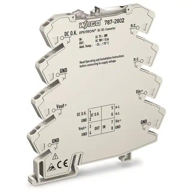 This is manufactured by WAGO Corporation. The manufacturer part number is 787-2802. It is assigned with possible HTSUS value of 8504.40.9580. The product is rohs3 compliant. The product features power and watts of 5w. The maximum product's output current is 500ma. It is approved by ce, eac, ul. It carries dc input type. The product is widely employed in ite (commercial). It has a 10v output voltage. It is a highly efficient product with an 89% of high efficiency. It is shipped in bag. The product's diameters include 3.85" l x 0.24" w x 3.70" h (97.8mm x 6.0mm x 94.0mm). It has a long 12 weeks standard lead time. Its typical moisture sensitivity level is not applicable. The splendid features of the product include adjustable output, ip20. The product has -25°c ~ 70°c operating temperature range. Standard number include: 60950-1. Additionally, the product is supplied with 1 outputs. The product is designated with the ear99 code number
