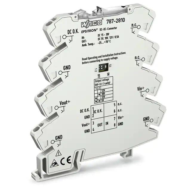 This is manufactured by WAGO Corporation. The manufacturer part number is 787-2810. It is assigned with possible HTSUS value of 8504.40.9510. The product is rohs3 compliant. The product features power and watts of 14w. The maximum product's output current is 500ma. It is approved by ce, eac, ul. It carries dc input type. The product is widely employed in ite (commercial), laboratory. It has a 5v output voltage. 10v of voltage output 2. It features 12v of voltage output 3. It is a highly efficient product with an 82.5% of high efficiency. It is shipped in bag. The product's diameters include 3.85" l x 0.24" w x 3.70" h (97.8mm x 6.0mm x 94.0mm). It has a long 12 weeks standard lead time. Its typical moisture sensitivity level is not applicable. The splendid features of the product include adjustable output, ip20. The product has -25°c ~ 70°c operating temperature range. Standard number include: 60950-1; 61010-1. Additionally, the product is supplied with 3 outputs. The product is designated with the ear99 code number