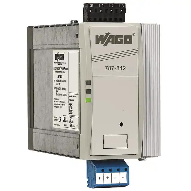 This is manufactured by WAGO Corporation. The manufacturer part number is 787-842. The product is rohs3 compliant. The product features power and watts of 480w. The maximum product's output current is 20a. It is approved by curus, eac, ul. It carries ac or dc input type. The product is widely employed in industrial, ite (commercial). It has a 24v output voltage. It is a highly efficient product with an 92.9% of high efficiency. It is shipped in box. The product's diameters include 7.05" l x 3.03" w x 6.73" h (179.0mm x 77.0mm x 171.0mm). It has a long 12 weeks standard lead time. 4.242 kv of isolation voltage. Its typical moisture sensitivity level is not applicable. The splendid features of the product include adjustable output, ip20, pfc, universal input. The product has -25°c ~ 70°c operating temperature range. Standard number include: 60950-1; ul 508. Additionally, the product is supplied with 1 outputs.