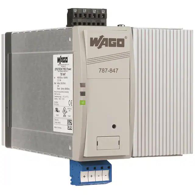 This is manufactured by WAGO Corporation. The manufacturer part number is 787-847. The product is rohs3 compliant. The product features power and watts of 960w. The maximum product's output current is 20a. It is approved by curus, eac, ul. It carries ac or dc input type. The product is widely employed in industrial, ite (commercial), laboratory. It has a 48v output voltage. It is a highly efficient product with an 94.4% of high efficiency. It is shipped in box. The product's diameters include 8.07" l x 5.04" w x 6.73" h (205.0mm x 128.0mm x 171.0mm). It has a long 12 weeks standard lead time. 4.242 kv of isolation voltage. Its typical moisture sensitivity level is not applicable. The splendid features of the product include adjustable output, ip20, pfc, universal input. The product has -25°c ~ 70°c operating temperature range. Standard number include: 60950-1; 61010-1; ul 508. Additionally, the product is supplied with 1 outputs.